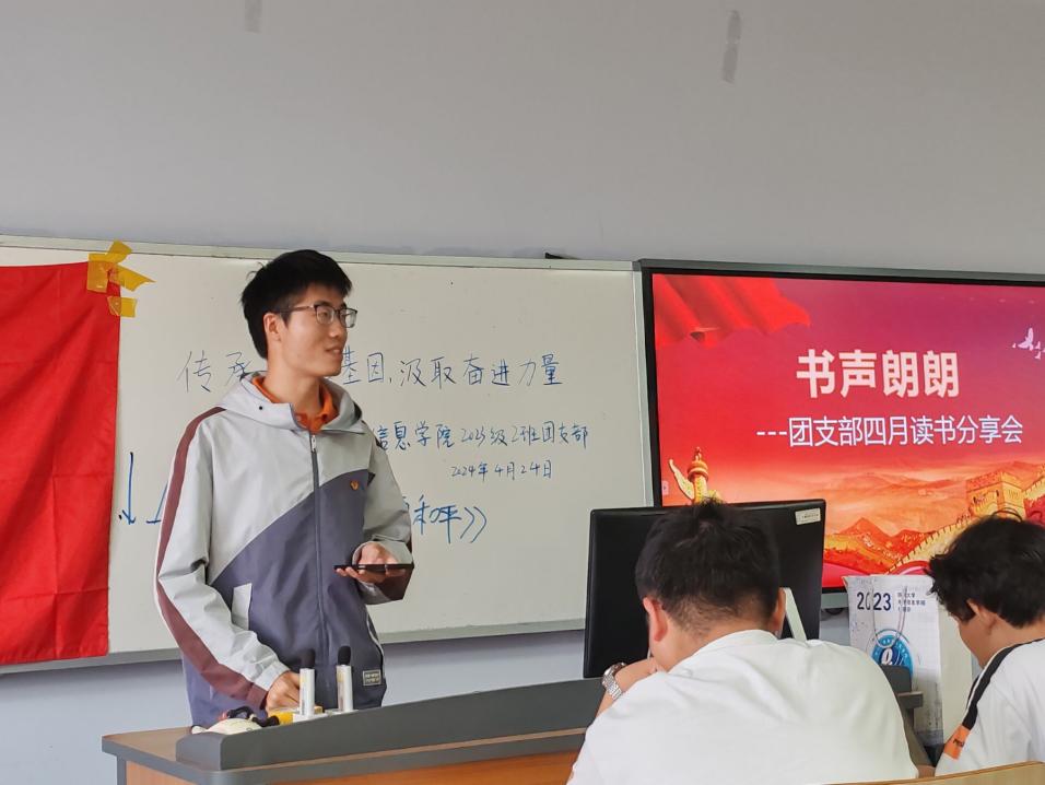 团支部四月读书分享会上同学们积极上台分享自己喜爱的书籍,从《战争与和平》到《209种常见花草图鉴》,从故事情节到读后感受,同学们自信昂扬,侃侃而谈,至此,读书分享会被赋予了别样而深刻的意义,读书也成为了2班学子分享与交流的主题。