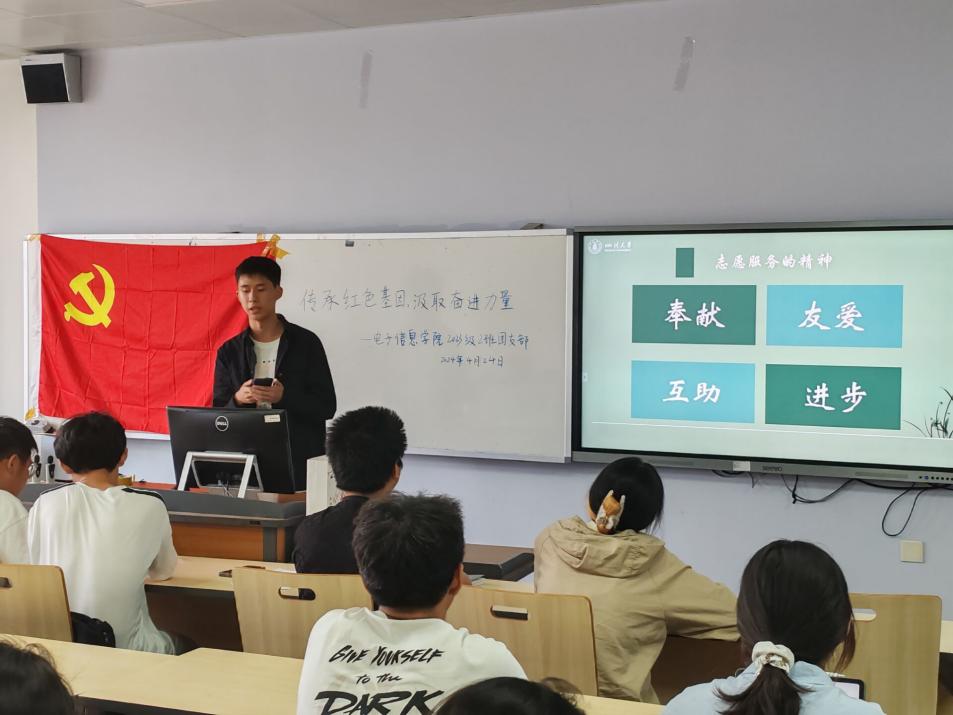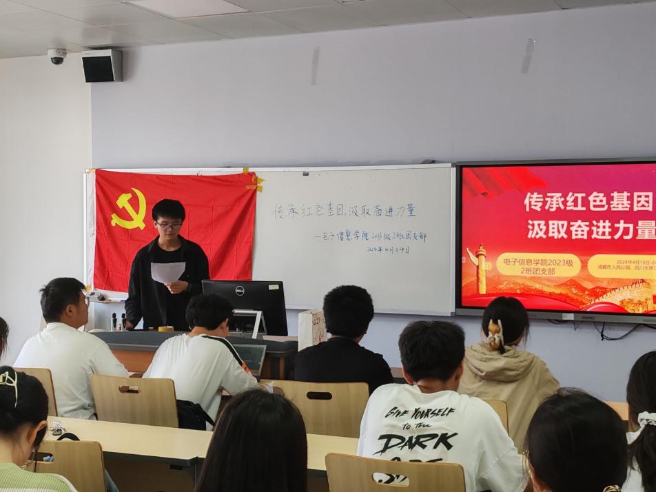 江安一教A505开展了以“传承红色基因,汲取奋进力量”为主题的团日活动,2班33名团员和3名青年参加。