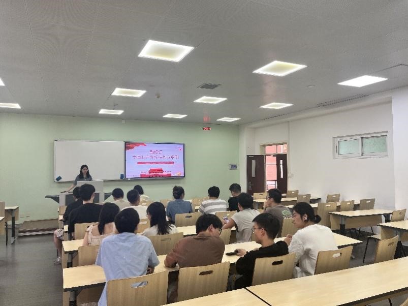 望江校区基础教学楼A座320教室举行了一场主题为“党纪学习教育”专题党课。本次党课由党支部书记陈鹏冰同志主持,2022级硕博第一党支部全体党员参加。
