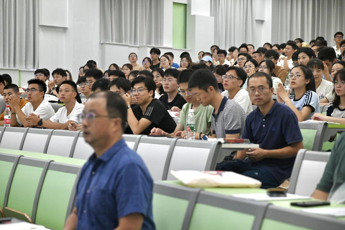 会议开始,学院副院长张启灿教授发表致辞,他首先对新生的到来表示热烈的欢迎。他指出,研究生的成长需要不同角色的老师为大家保驾护航,辅导员在日常事务管理和思想引领中起着关键作用,教务老师负责课程安排、成绩管理和学术规范指导,而导师则是学术探索道路上的引路人,为同学们提供关键的支持与指导。此外,张院长还针对学术能力培养和学术诚信提出了宝贵的建议和指导,强调了在学术探索中不断追求卓越和坚守诚信的重要性。