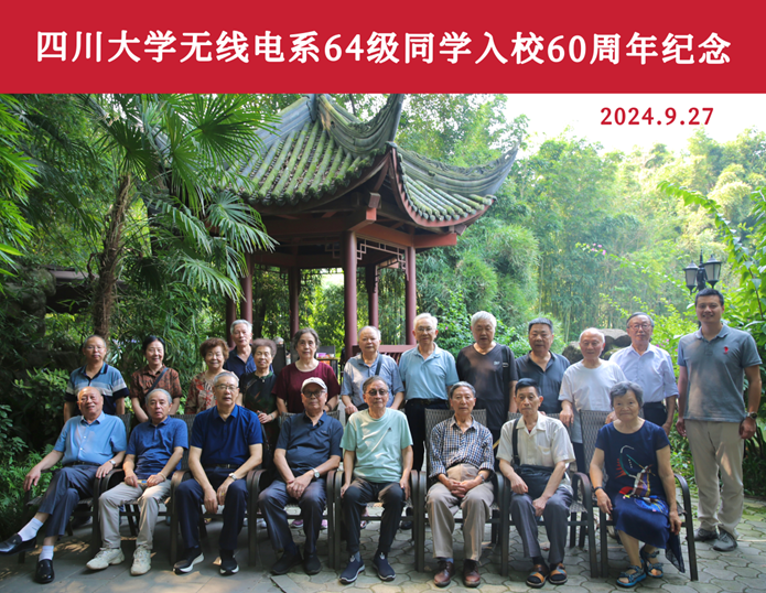 无线电系64级同学入校60周年纪念活动在望江公园顺利举行。64级校友、学校原党委书记王祯学和学院原党委书记刘维亚,以及其他20余位64级校友从五湖四海赶回母校,共忆往昔青葱岁月和阔别60年的同窗深情。学院党委副书记廖勇明和校友工作联系人张帆参加此次纪念活动。