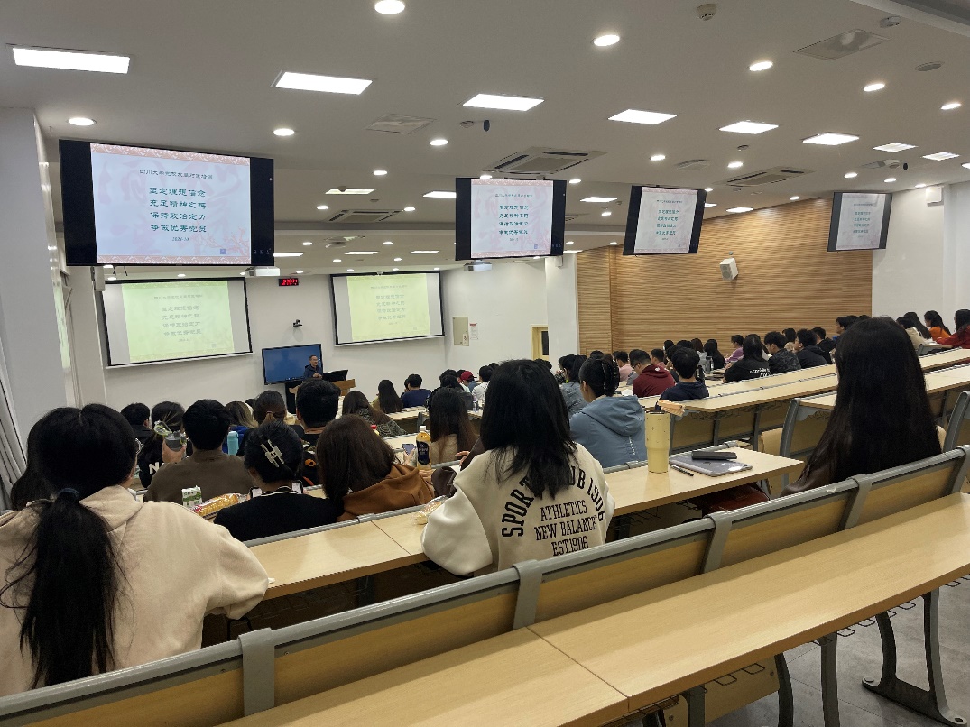 马克思主义学院冯兵教授授课,冯兵讲授以“中国共产党治国经验与启示”为主题向同学们讲述中国共产党百年奋斗的历史经验。冯兵教授指出,思想建设是党建灵魂,坚持马克思主义是思想建设的核心,不断推进理论创新是思想建设的本质要求。同时结合中国共产党治国理政的经验与启示,呼吁同学们要善于学习,牢固掌握解放思想、实事求是、与时俱进、求真务实这四大法宝,并在此基础上努力守正创新。
