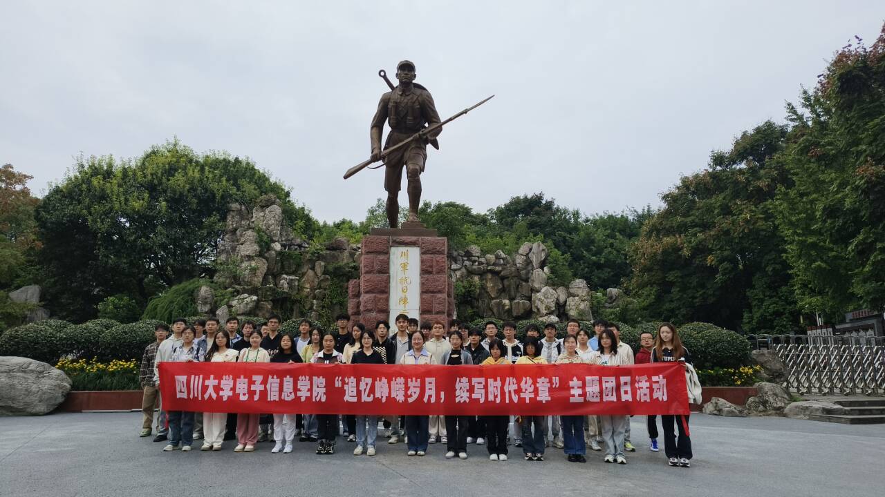 图为同学们在人民公园川军抗日纪念碑前合影