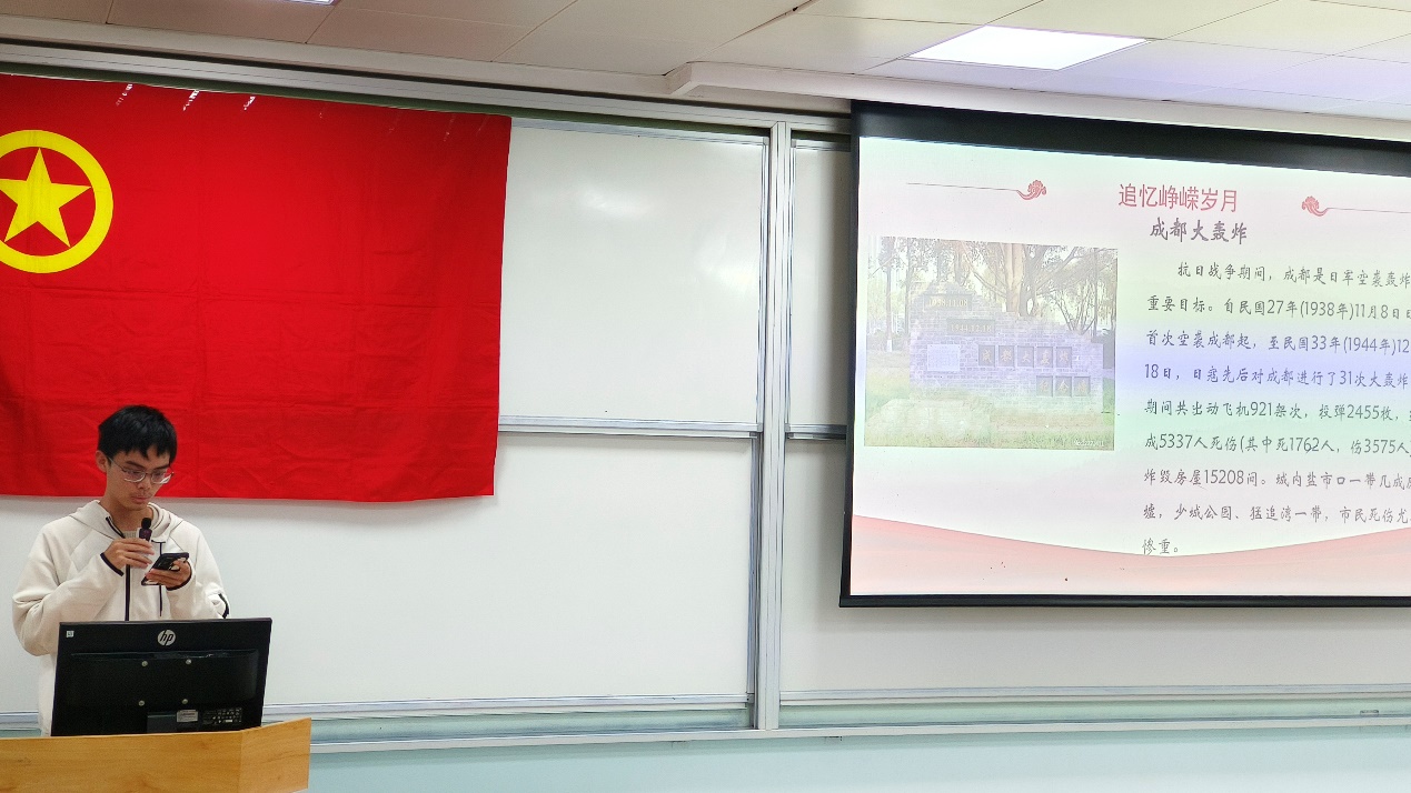 铿锵有力,讲以打动心灵。从人民公园回来后,两位学生代表分享了自己对于成都大轰炸和川军抗日这两段历史的学习感悟。