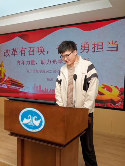 党员高源同志与水利水电学院学院王宏涛同志结合自身专业特点做出了自己的回答。高源同志从光学工程领域在新时代遇到的机遇与挑战入手,引用苏东林院士提出的“坚持‘世界一流’与‘中国特色’有机融合”强调了科技创新对光学工程的推动作用以及光学工程在可持续发展中的作用。最后,高源同志提出作为新时代青年,应肩负起时代赋予的使命,积极投身科技创新实践,勇于探索未知领域,致力于个人综合素质的培养与提升,为产业升级和国家发展贡献青年力量。王宏涛同志以水利学子的角度讲述了水利水电专业的故事,提出数字水网彰显我国水利事业新质未来。他以数字水网为例,提出数字水网的建设不仅是提升成渝双城经济圈水资源管理能力的重要举措,也是推动区域经济高质量发展的关键因素,强调作为水利学子更应该紧跟党的步伐,找准水利事业在生态文明建设中的站位,坚持“绿水青山就是金山银山”的绿色发展理念,坚持保护为主,适应发展新格局,推动水利事业高质量发展,为人民的幸福安康和民族的伟大复兴提供最坚实的保障。