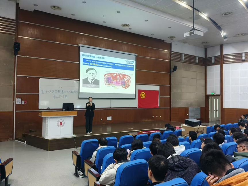 团委于12月7日10时在江安校区综合楼C407举办第二十六期团校第二次行课。聚焦“中国式现代化的必由之路”这一主题,本次行课邀请到共青团十九大代表、中核集团核工业西南物理研究院高级工程师郑雪博士主讲,郑雪老师任中核集团核工业西南物理研究院聚变科学所团委书记、“人造太阳”博士科普团团长,同时也是团中央“青春心向党 奋进新征程”示范宣讲团成员、四川省“科技之光”青年宣讲团成员及四川省十佳优秀科普使者。
