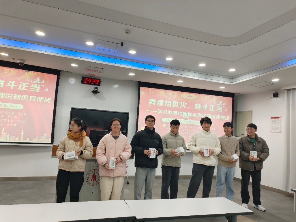 电子科学与技术研究生第一党支部、光学工程研究生第一党支部、信息与通信工程研究生第一党支部和电子信息研究生第一党支部在望江校区基础教学楼C座103联合举办了一场主题为“青春恰似火,奋斗正当时”——学习贯彻党的基本理论知识党课活动。本次党支部学习大会由于鲲鹏同志主持,各支部全体党员和积极分子参会。