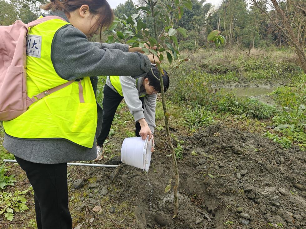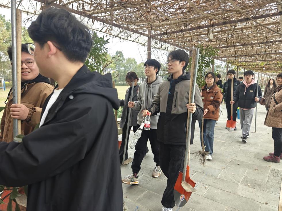三个班级的18名团员青年,以“‘植’此青绿,‘浇’个朋友”为主题,携手走进成都双流九隆成生态园,用青春的汗水为大地织就一片新绿,让志愿服务的暖意与春色一同生长。
