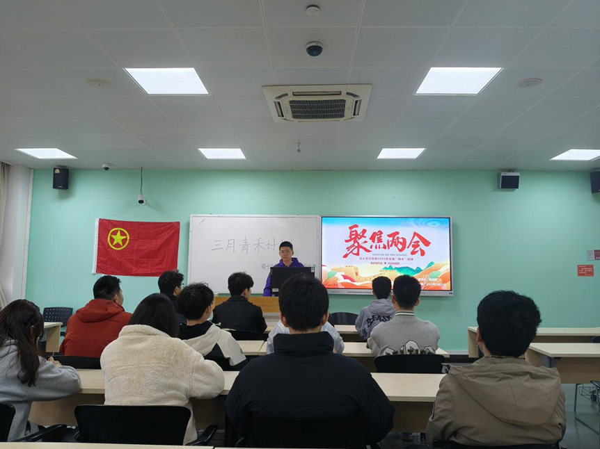 活动开始,主持人带领全体参与人员高唱团歌,莫斌斌同学以“深入学习贯彻2025年全国两会精神”为主题,分别从两会概览与时代意义、政府工作报告和习总书记重要讲话精神三方面对两会精神进行了全面且深入的阐述。随后,申鑫老师围绕发展支部建设、团员发展与团员推优等团务工作展开介绍,强调了团组织在青年成长中的重要作用,为团支书开展相关工作提供了明确的方向。谭晶晶同学则以“务实笃行、行稳致达”为主题,从智慧团建、基础团务、组织动员、制作宣传、读书分享会等六个方面进行团支书经验分享,其中,针对读书分享会,谭晶晶同学提出了几条切实可行的建议,参会团支书们受益匪浅,感获颇多。