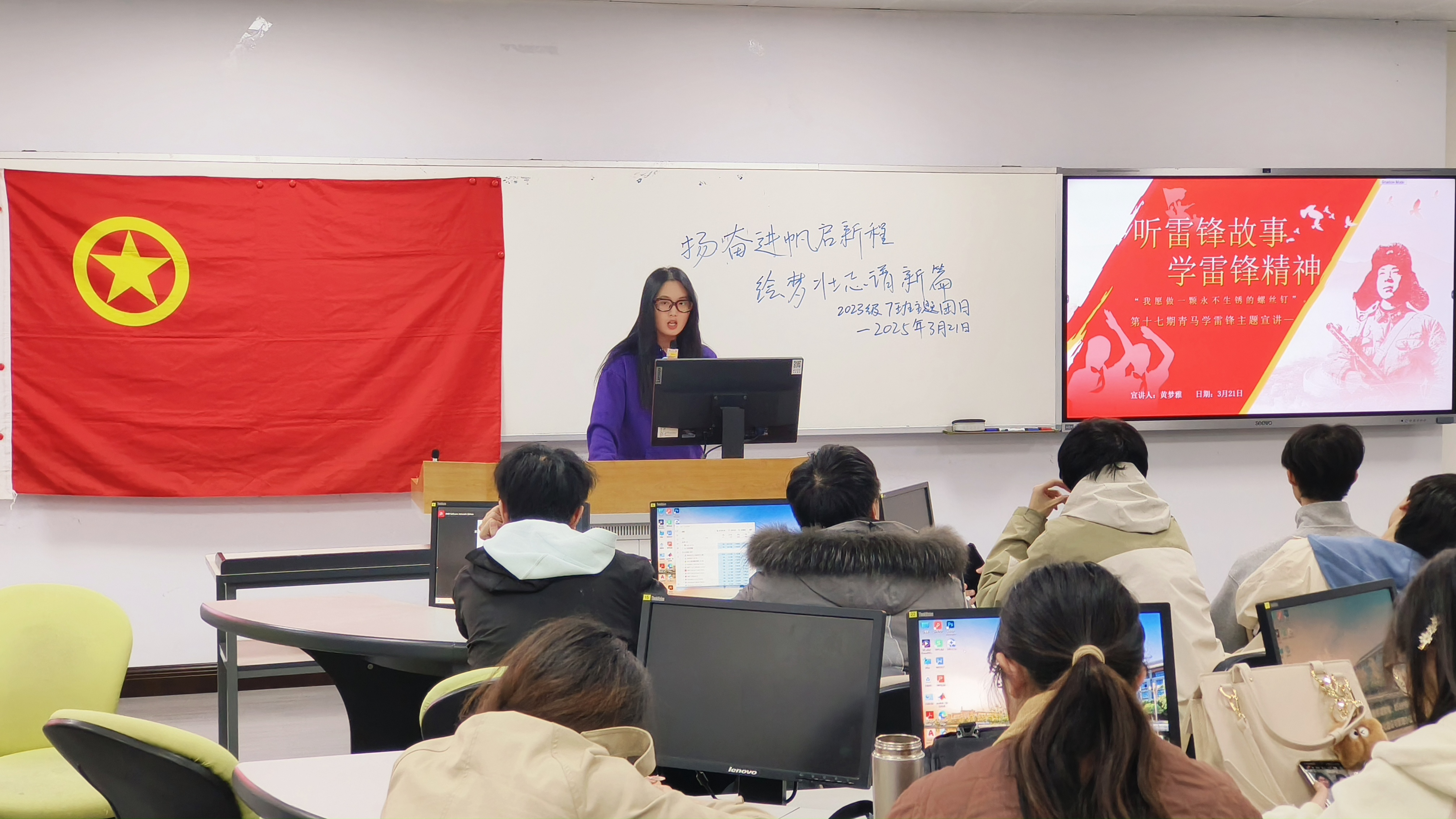 2023级7班团支部于3月21日至22日开展了“青春闪耀雷锋月,学思践悟两会情”主题团日活动,通过理论学习与实践服务相结合,引领团员青年筑牢信仰根基、强化责任担当。
