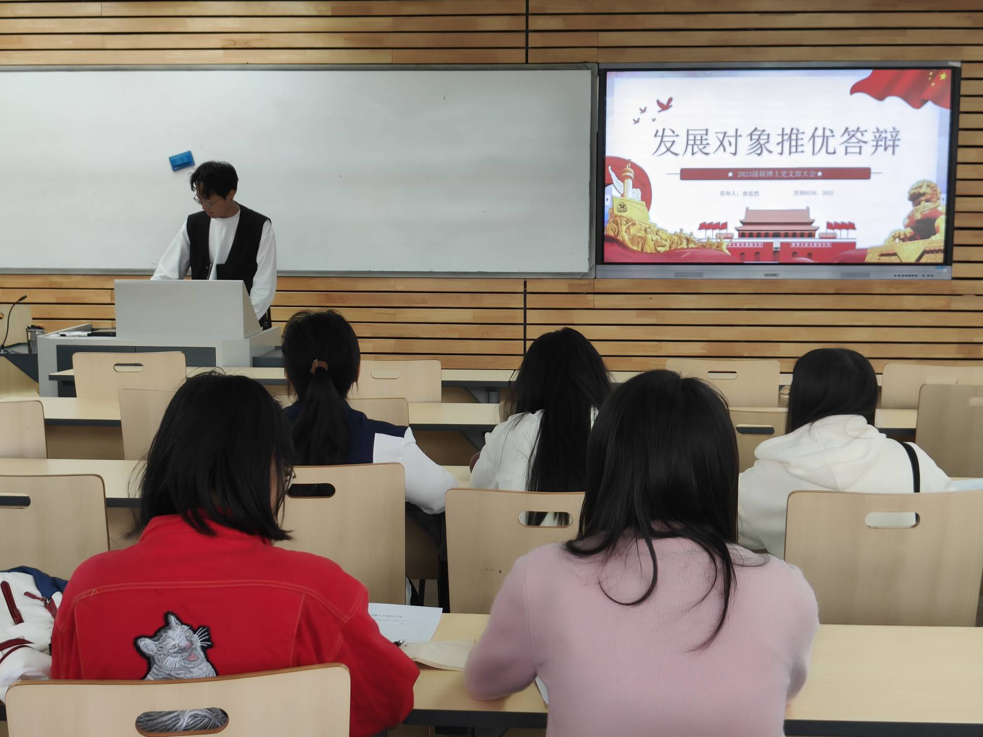 接着,何惠老师对党员积极分子推优的流程对党员同志进行了培训教育,然后开始积极分子推优答辩。推优工作是团组织工作中的一项重要工作,深入做好推优工作,是党组织赋予共青团的光荣职责,是共青团组织充分发挥党的助手和后备军作用的重要体现。此次入党积极分子推优候选人分别是:安成昊,倪卓州,何新月,李亚奇,张原皓,王怀玉,彭钰杰,朱旭,曾泓然,白玉成,王军,彭婕。