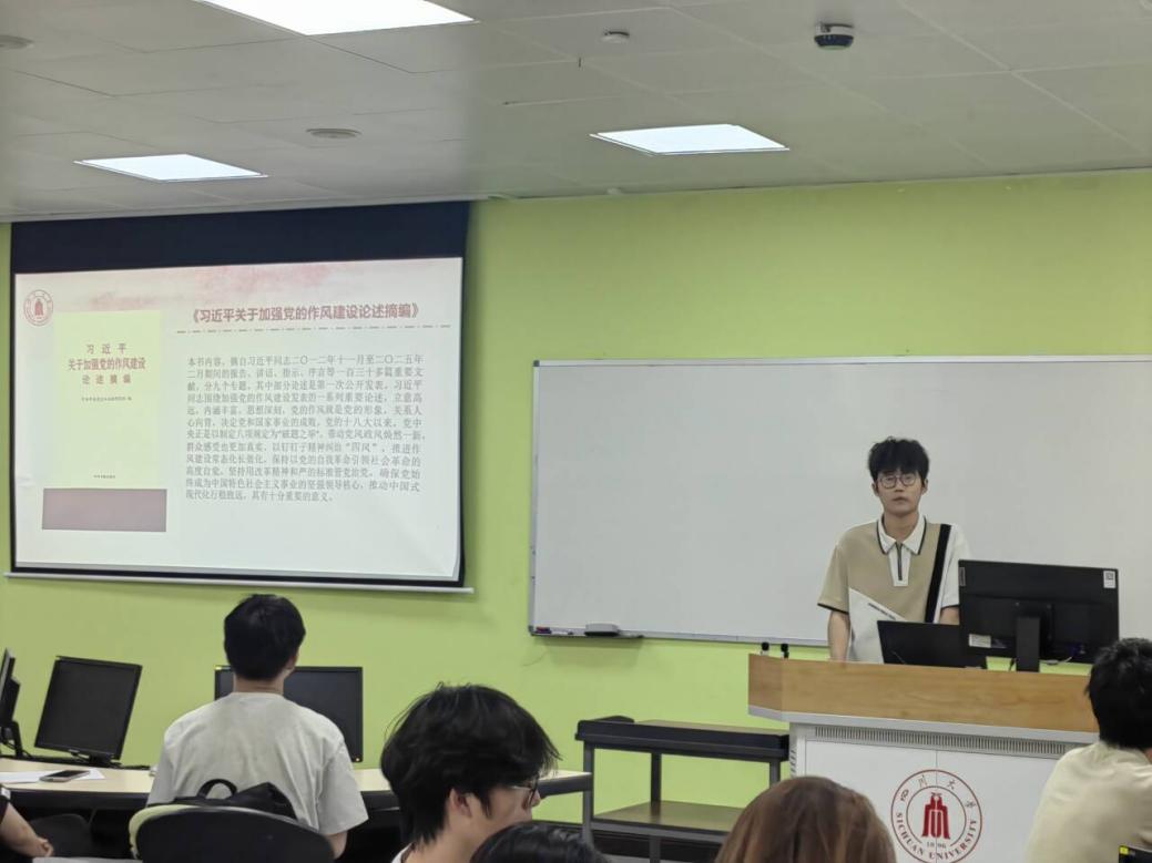 江安校区综合楼B203进行集中政治学习、八项规定学习以及“红途轮忆,青讲党史”主题活动暨读书分享会。支部书记申鑫,全体支部党员、部分入党积极分子与团推优学生参与了此次活动。