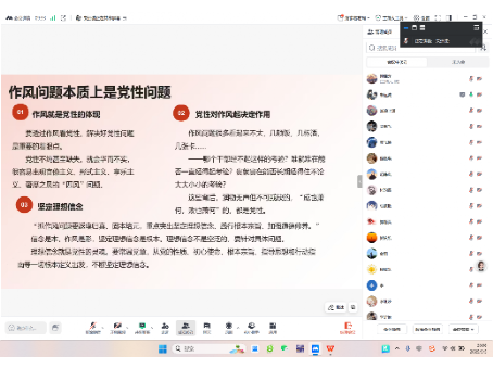 江安本科党支部于2025年5月5日晚上八点在腾讯会议线上举行八项规定学习分享和“红途轮忆,青讲党史”主题活动暨读书分享会。支部书记申鑫,支部党员、发展对象、部分入党积极分子和团组织推优成员参会。