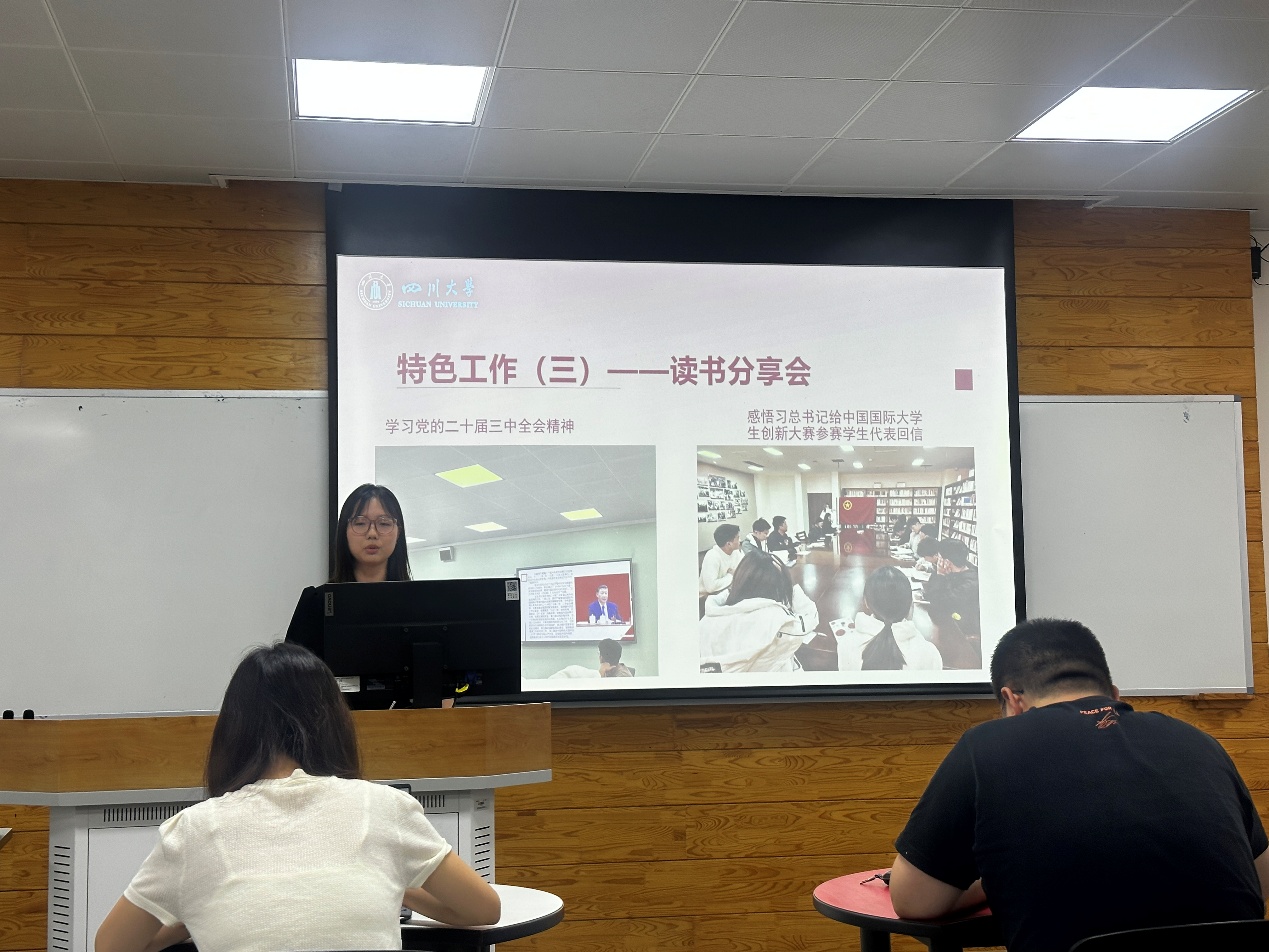 9班团支书谭晶晶重点汇报了9班团支部在团日活动和学风建设方面的创新实践。她带领支部开展“追忆峥嵘岁月,续写时代华章”等主题团日活动,相关活动荣获MX动漫
