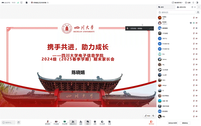 通过线上会议形式成功举办2024级春季学期期末家长会。本次会议以"携手共进,助力成长"为主题,由辅导员陈晓娟主持,362名学生家长参与。