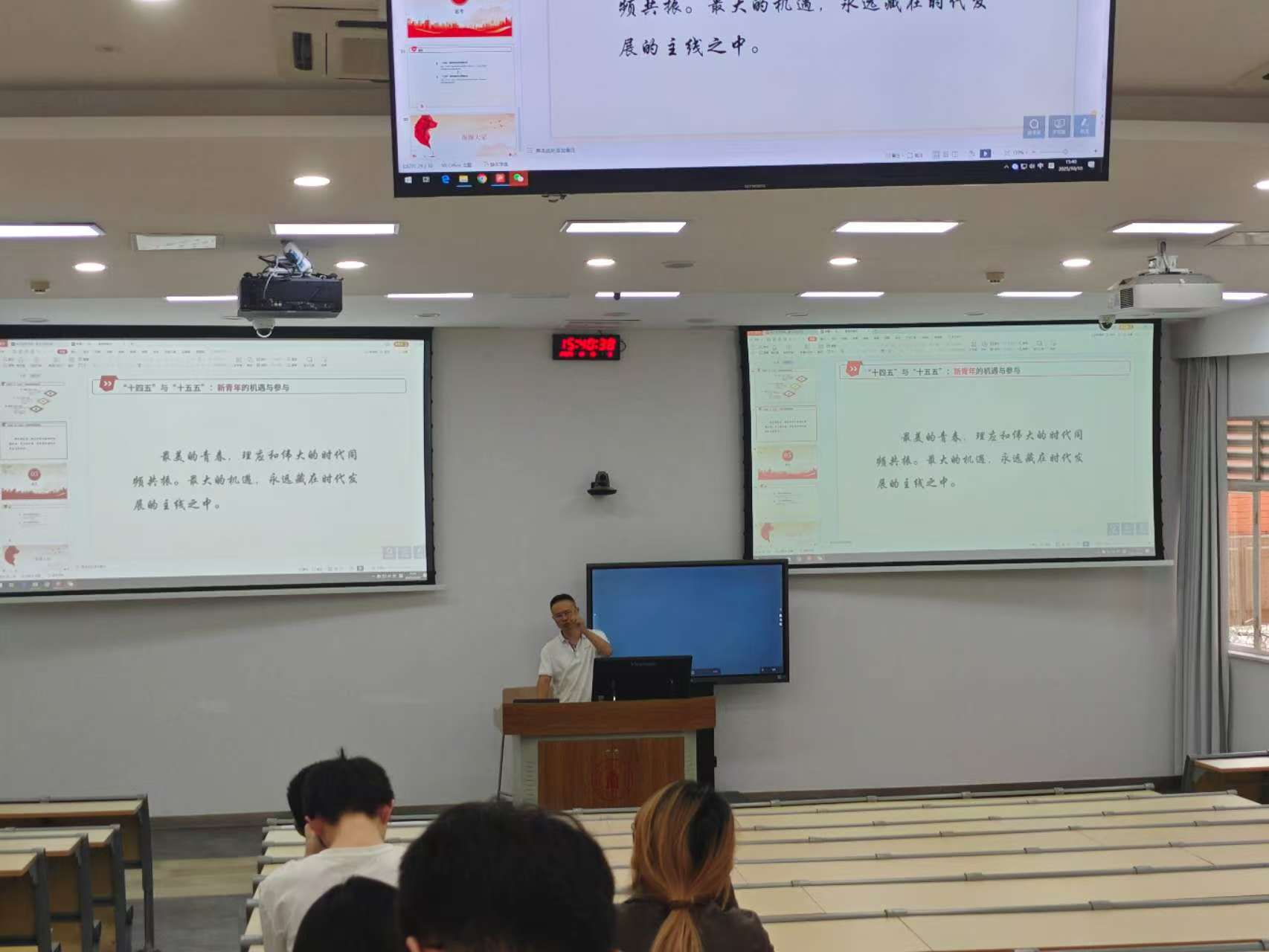 本次课程的主题是《决胜“十四五”,奋发向前行》,课上,谢老师以饱满的热情倾情演讲。他勉励同学们要坚定理想信念,将个人发展融入时代潮流;要主动探索自我,充分利用MX动漫