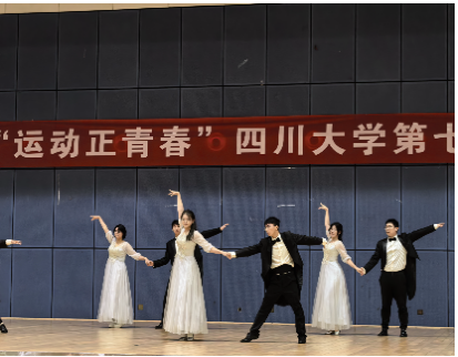 紧随其后,10月26日上午的体育舞蹈比赛也顺利进行。由学院12名同学组成的体育舞蹈队,身着礼服登场。他们舞步轻盈,配合默契,将青春的活力与华尔兹的优雅相融合,舞出了属于青年的蓬勃朝气。