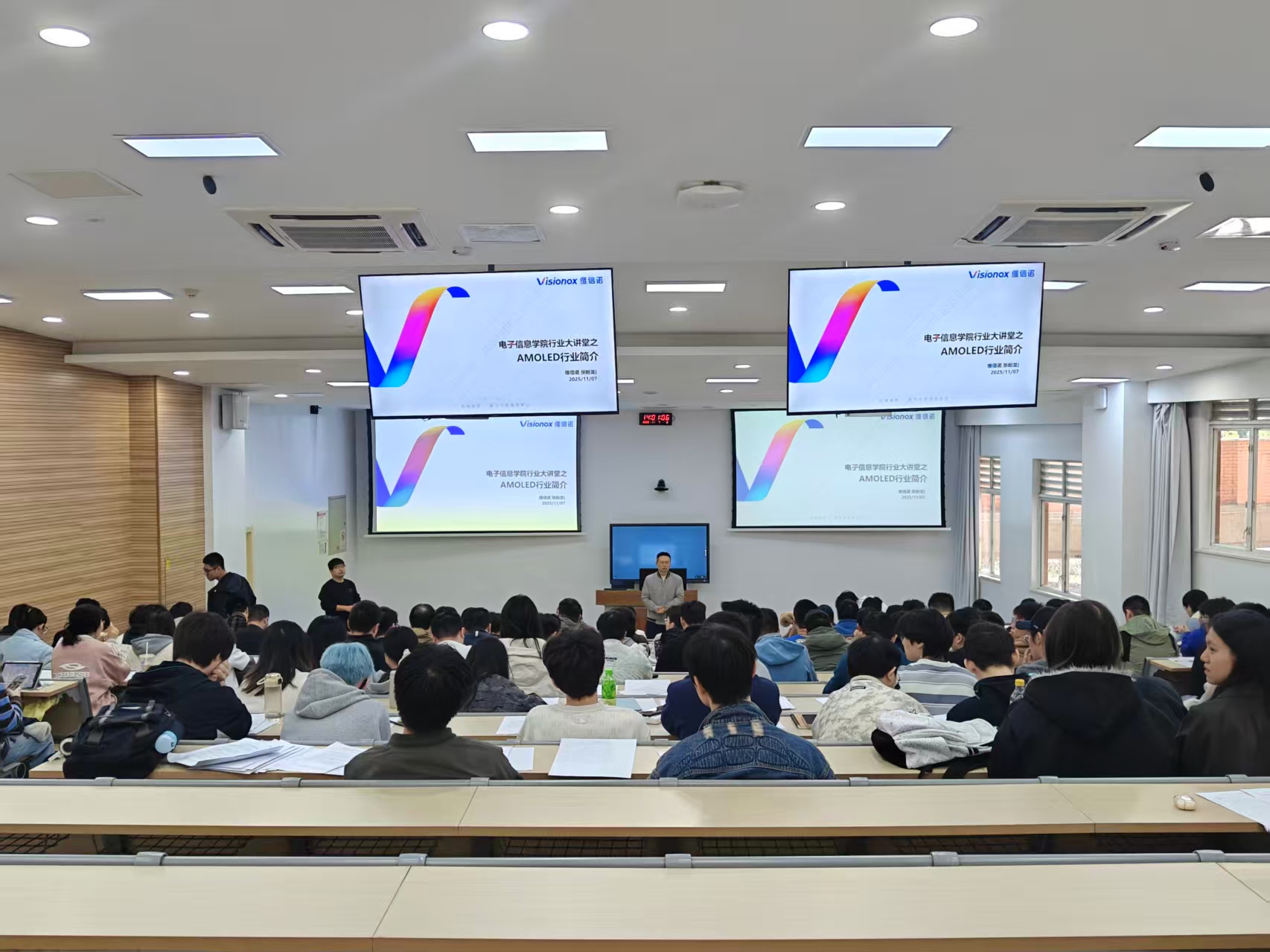 联合主办,此次主题是行业大讲堂之显示技术行业,活动在望江校区基础教学楼C座C203成功举办。本次活动特别邀请维信诺(Visionox)公司技术专家张盼龙担任主讲嘉宾,通过专题报告与互动问答相结合的形式,为学生提供了了解前沿科技、感受产业创新的宝贵机会。
