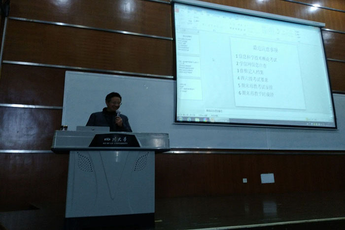 对于考试作弊的处分规定,并谈了几个以前的事例,让同学们引以为戒,一定要诚实做人、诚信考试。随后,孟滋常老师又给同学们发了一张关于诚信考试的宣传单,引导同学们认真阅读,让同学们深刻地认识到了考试作弊对一个人一生的发展的坏处。之后,孟滋常老师要求同学们认真对待英语四级考试,坚决不能作弊,要尊重知识,诚信考试,孟滋常老师要求同学们做一个诚信的人,将诚信这种美德一代一代地传承下去。