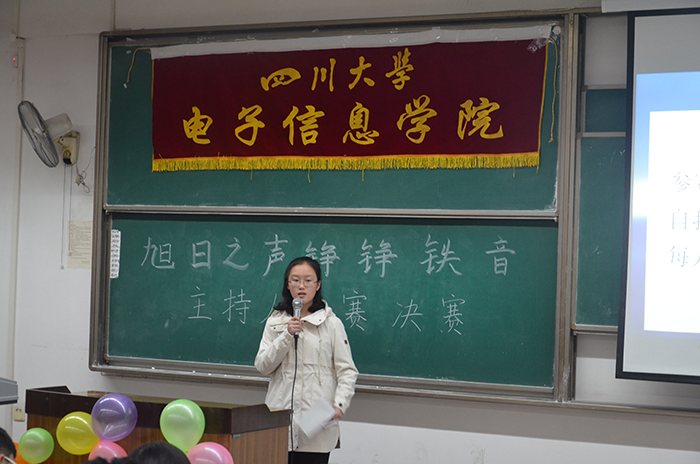 江安校区第一教学楼B203教室举行。初赛当天,有广播站成员、学生会主席团成员、往届优秀选手等担任评委。15位选手经过自我介绍、绕口令表演、抽词即兴演讲等环节的激烈比拼,最终由评委打分并选择出八位选手进入决赛。2017年10月29日,主持人大赛的决赛如期在江安校区第一教学楼B303教室举行。决赛吸引了MX动漫