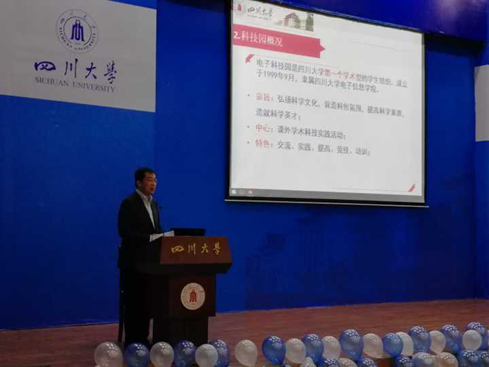 发挥的作用以及会员在科技园中应当获取的知识与经验发表了重要讲话,同学们都全神贯注的聆听,受益匪浅。第二位发表讲话的是电子科技园数字电路设计第一组指导教师李小舜老师,他着重介绍了高要求高标准的学术型竞赛对参赛者创新能力的要求和挑战,让会员们初步了解竞赛。紧接着的是物联网实践与创新协会学术型社团指导教师孟庆党老师的精彩发言,孟老师生动形象地为同学们讲述学习的意义,亲切地告诉同学们大学应当怎样度过。