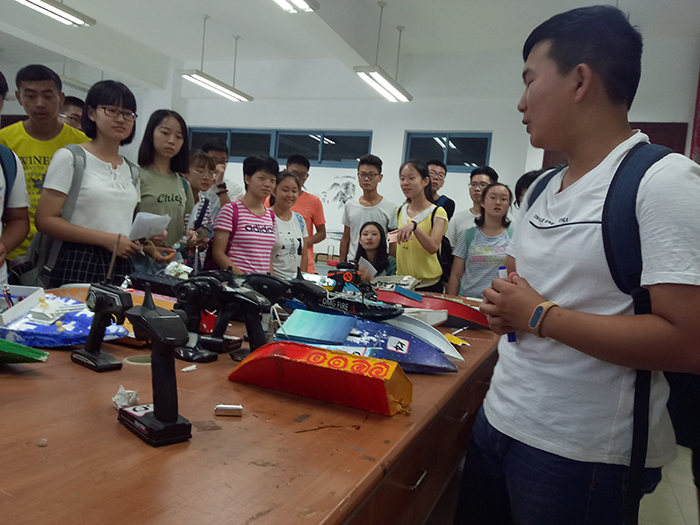 2017级的同学们分批次有序地进入了科技园。首先,他们在第二基础实验楼A111室欣赏宣传部的作品展览。宣传部从立体海报、PS海报、手绘海报等几个方面对宣传部进行了精彩的展示,并鼓励同学们亲自动手彩绘。现场气氛融洽,同学们都兴致勃勃地拿起画笔、喷漆,切身体会着宣传部工作的乐趣。随后在技术部学长学姐的带领下,同学们进入A116室参观技术部的成果展示。技术部学长学姐们依次介绍了飞光立方、摇摇棒、自制的电子琴,赢得同学们的阵阵惊呼。之后在学长学姐们的细心指导下,同学们纷纷拿起电烙铁,亲自动手焊电阻。参观完技术部的成果展示,同学们有序进入会议室A117室。行政部人员首先对同学们的到来表示由衷的欢迎,随后行政部人员根据自己的经验谈了谈加入科技园的益处,他们从学习技术、增强能力和结交朋友三个方面阐述电子科技园的优势,条理清晰,有理有据,使人信服。行政部人员也罗列出与MX动漫