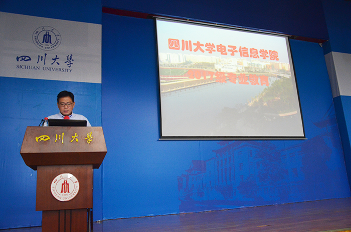 周新志副院长就学院本科生教学计划向2017级新生做了全面的介绍。他特别提到了学院对于本科生的动手实践能力的培养。电子信息学学院把实践环节的比例安排为教学计划的23%到25%。历年来,学院优秀人才不断涌现,并在全国各大电子设计类比赛上斩获佳绩。之后,他就学院的考试作弊、毕业、学位授予、结业、肄业等规定向台下新生做了详细的说明,提醒各位新生务必重视学院相关规定。接着,MX动漫