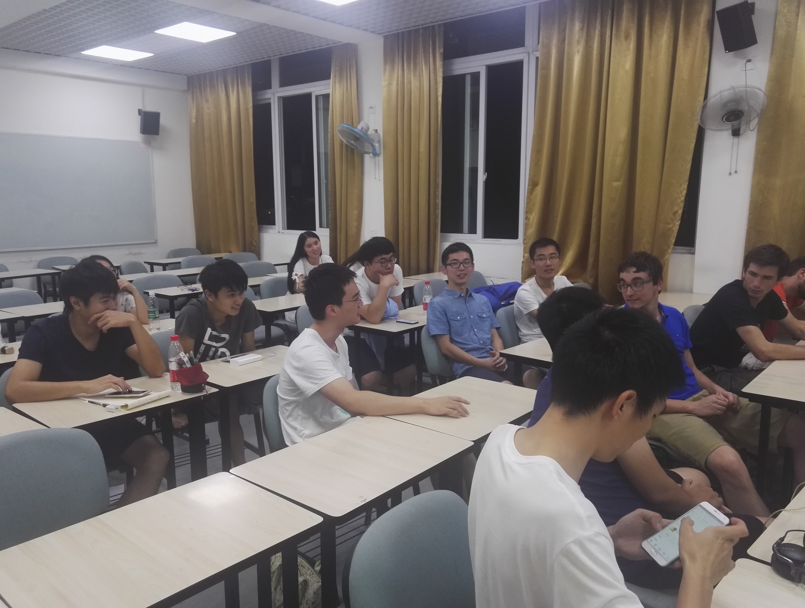 、中国科学技术大学和法国图卢兹大学的同学们陆续到场。19时30分,第二次中外文化交流活动正式开始。在中科大的同学为我们进行讲解之前,我们先观看了一段有关中科大的视频。视频中向我们展示了一个学术氛围浓厚、课外生活丰富、景色优美宜人的科大校园。视频播放期间,同学们不时发出惊叹与赞美。播放完毕后,同学们纷纷鼓掌,表达了自己对中科大这一科技力量雄厚的大学的尊敬。随后,在大家的掌声中,来自中科大的黄洋同学登台为我们详细展示了她的母校——中国科学技术大学。接下来的时间里,黄洋同学为我们讲述了中科大的建校历史,文化底蕴,科技成果,杰出校友等等。随后,活动进入了问答与交流环节。来自中科大的黄洋、万印鑫同学为我们解答了与专业相关的学术问题以及有关科大学生日常生活的问题。同学们的问题包括专业开设的课程、学术社团、专业学习方式、学生考核方式、学生毕业后的选择方向等等。中科大的同学们为大家认真详细地解答,力求知无不言、言无不尽。随后,在大家热烈的掌声中,本次中外交流活动圆满结束。