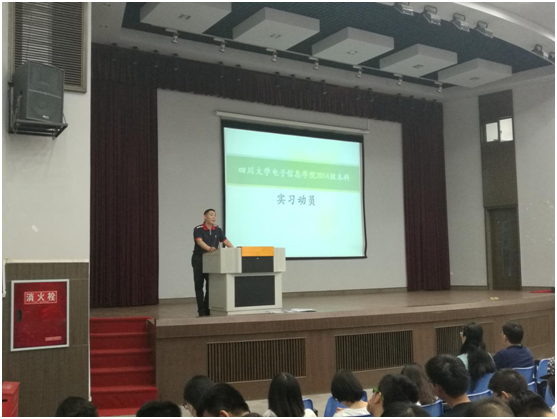 2014级本科实习动员大会在望江校区三教演播厅顺利举行。参加本次动员大会的学院领导有:学院主管教学工作的副院长周新志教授、学院主管学生工作的陈笃海副书记,动员大会由14级辅导员吴秀玲老师主持。