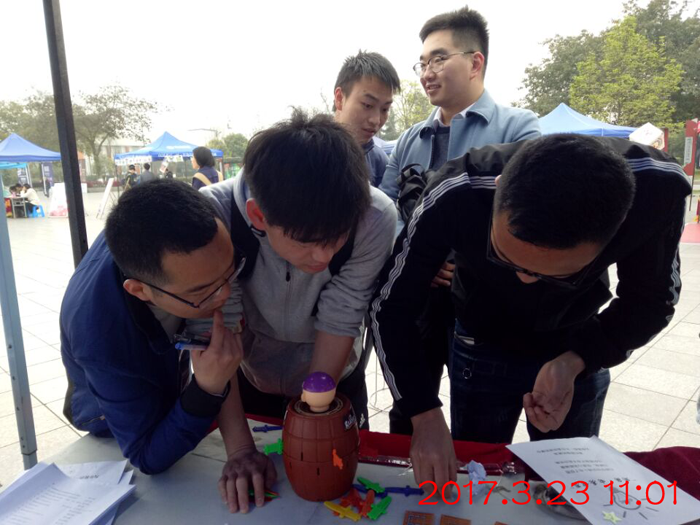 早晨7时20分,同学们便集合在6舍,将展板、桌椅以及奖品等物资陆续搬运到青春广场,开始设置摊位和游戏道具。在两个学院同学的共同努力下,摊位很快便设置完毕,活动正式开始。刚刚摆好的摊位便迎来了第一位参加活动的同学,工作人员显得有些手忙脚乱,但很快便镇定下来,为同学讲解游戏规则和奖励规则。上午陆陆续续来了不少想要参加活动的同学,都十分积极的参与到游戏中,拿到了自己心仪的奖品。接着到了中午放学的高峰期,下课的同学们都被摊位上丰富的活动所吸引,纷纷加入到活动中,答题,焊接,连接电路,玩的不亦乐乎,摊位前挤满了玩游戏的同学。工作人员准备的礼品也很快被领走了大半。下午的活动延续了中午的热度,不时有同学来到摊位前,开心的参与活动,都表示对此次活动十分满意。奖品在下午全部发放完毕,于是17时整,工作人员将摊位收拾打扫完毕,活动圆满结束。