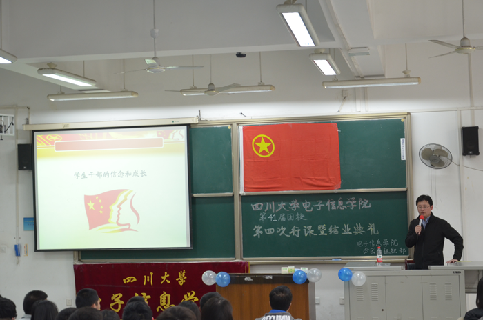 首先,全体合唱团歌。接着,徐海鑫书记就以青年学生干部的自我素养为主题,向我们分享了他作为青年学生干部的成长经历,并向我们逐一阐述了作为共青团团员所肩负的使命与面临的挑战。随后,李运国老师与陈林老师为第41届团校的优秀团支部与优秀学员颁奖,李运国老师随后进行了简短而风趣的结业致辞,为大家总结了团校课程开始以来大家的收获。最后,优秀学员代表盛舒琪同学为我们分享了她的结业感言。团校结业典礼到此圆满结束。