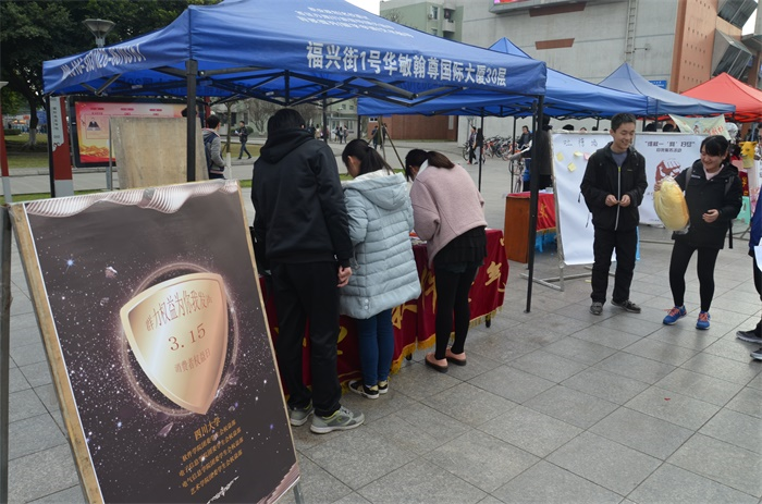 活动进行时,守摊的干事热情的邀请过往学生参与游戏(即有关消费者维权意识的选择题,5对2即可参与抽奖)环节中还负责的提示参与者,势必让他们不空手而归。末了,还不忘给其传单,让他了解3.15文化。同时,发放传单的干事也逆着人流,负责地进行宣传工作。中午12点,伴随着放学铃声的响起,人流量达到峰值。期间,MX动漫