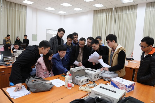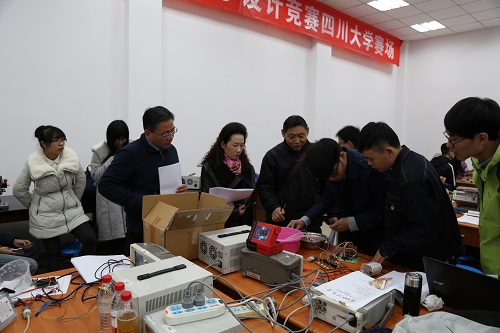 此次赛事分为创意、作品两类,范围涵盖生活中“衣、食、住、行”等移动互联产品创新技术与创新应用方案设计。创意类包括“微波无线能量传输的新应用”、“微波能在工业或环境保护中的创新作用”、“光电与川大校庆”、“行驶汽车前方障碍物类别判断、运动速度和安全距离监测与预报”等四个题目;作品类包括“主题竞技赛:寻宝奇兵”、“基于演讲者的实时检测与跟踪系统设计”、“智能鱼缸控制系统”、“基于语音和声纹识别的身份认证系统”、“伪基站监测与定位”、“高压稳流电源系统”、“基于手机的示波表”、“矢量阻抗测量系统设计”等八个题目。通过层层筛选淘汰,近四十组优秀作品参加了此次比赛的最终环节,当日早九点半点,来自电子、电气、吴玉章等多个学院的30余支参赛队伍准时到达测试点开始调试作品。上午十点,各类别作品的评测工作井然有序地展开。评审老师们耐心地听参赛队伍的解说,仔细观察各队伍的演示,对作品中的优、缺点分别进行了点评,鼓励大家再接再厉。创意类参赛队伍派出代表,对小组研究成果作了详尽的ppt展示,面对评委老师们的提问应答自如。待所有参赛作品测试完毕,本届“五粮春杯”科技创新设计大赛圆满结束。