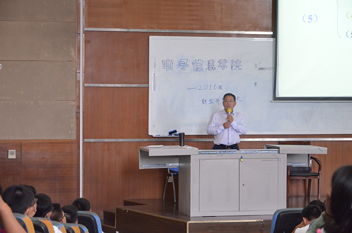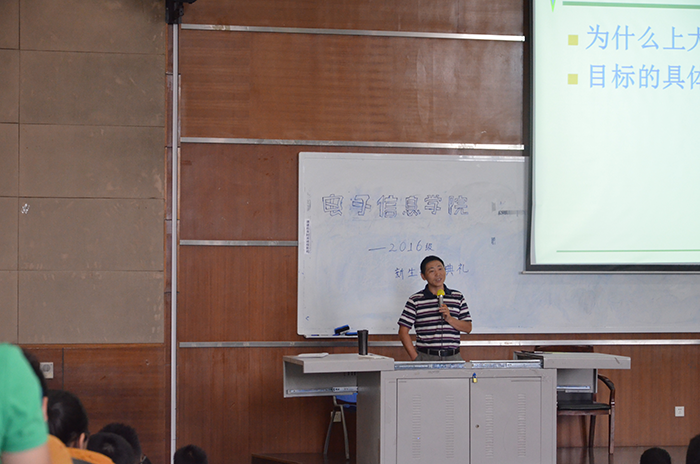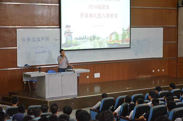 学院的专业,培养目标和就业方向,使同学们对自己的专业有了更深一步的了解。周院长还介绍了本科生培养模式与方法以及创新人才培养工程等,并详细说明了我们学院要学习的各类课程及需修满的学分。通过周院长详尽的介绍,同学们对学院的科研条件学校资源等也有了更多地了解。然后,陈书记上台发表了讲话使新生们对大学生活充满了期待,并且对大学生活的规划有了初步的了解。最后,陈林老师讲解了接下来几天新生的工作。此次新生入学典礼在同学们热烈的掌声中顺利结束。