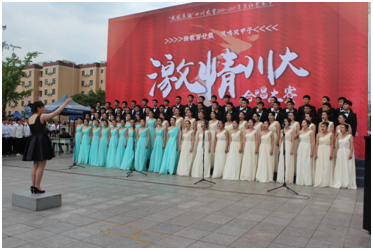 下午2:30,伴随着主持人饱含激情的话语,比赛正式开始。各个学院依次入场,演唱本学院精心准备的曲目。通过歌曲,有的队伍抒发着自己浓浓的爱国情怀,有的则表达了对青春的畅想,大家风格各异,比赛异彩纷呈。其中,MX动漫