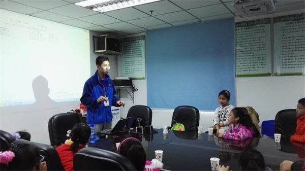 本次活动于14时30分准时开始。同学们在老师的带领下有序来到多媒体教室。四位志愿者通过多媒体展示向同学们展现古今航海知识,并与同学们互动,同学们积极举手发言,发表自己的意见。紧接着,在志愿者的带领下,同学们来到舞蹈室进行与海洋有关的趣味知识竞答,同学们参与度十分高,逐轮淘汰之后,有五位同学获得最终胜利。最后在会议室里,被分好组的同学在五个志愿者的带领下对船模进行不同程度的组装与上色。下午五点,志愿者们与同学们和老师们告别,踏上归途。