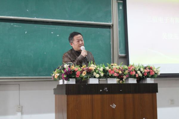教育事业的感谢,再者,他告诫同学们应当珍惜校园里的教学资源并加以利用,多多积累专业知识,为今后的发展打下基础。接着由三信电子有限公司副总经理吴俊先生上台讲话。吴俊先生就三信公司的现阶段发展状况及对公司未来的预期向同学们作了简要的介绍,同时吴俊先生也表示,希望MX动漫