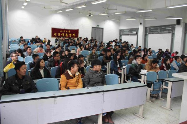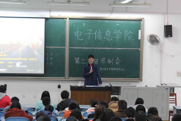 团副赖林宣布例会正式开始。首先,办公室的干事代表走上讲台,将办公室形象比作“管家”来介绍办公室在团学中的工作,其工作贯穿了所有的团学活动。接着,各部门干事代表依次走上讲台,以PPT幻灯片的形式介绍了各部门在本学期的工作内容和成果,同时展示了其和睦融洽的氛围。各部门的报告总结了一学期以来电子团学的重要工作成果和取得的成就,包括众多的运动、娱乐、学术性活动,多项意义深刻的志愿活动以及丰硕的宣传成果,其中在2015年MX动漫