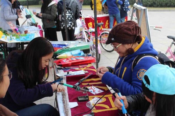 还加入了“DIY电子小制作”互动环节。即购买电子作品“摇摇棒”的元件,在活动现场邀请有兴趣的同学亲自动手对其电路进行焊接,并将制作成功的“摇摇棒”作为纪念品送出。整个过程都有干事在旁进行讲解和指导,确保了参与同学的安全和制作的成功率。它给予了参与者了解电子信息专业和相关电子工艺的机会,同时参与者可以亲自动手、亲身体验电子科技,而不仅仅只停留在理论层面,这有效地提高了川大学子的科学素养。