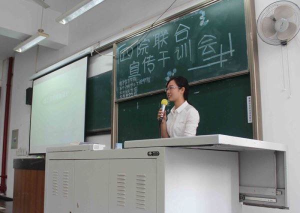 下午3点,在主持人的宣布下干训会正式开始。首先,由高分子科学与工程学院的姚良松同学为各位干事进行了新闻写作的讲解,他从内容、形式以及细节等方面对新闻写作的要求进行了阐述,使同学们对新闻写作有了更深刻地认识和了解。随后,水利水电学院的李凌云同学又为干事们讲解了新闻摄影技巧,从新闻摄影的定义到拍摄技巧再到经验之谈,李同学生动形象地为大家展示了在新闻中摄影的重要性与独特魅力。紧接着,MX动漫