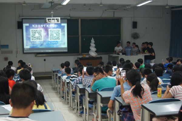 晚上7点,招新宣讲会正式开始。在主席团简短的自我介绍过后,团委学生会与科技园各部门开始依次宣讲,向同学们简要地介绍学院组织社团以及它们的一些职能。各部门纷纷亮出杀手锏,搬出过去一年所作出的成绩与成就,吸引新生报名参加学生会与社团。宣讲的方式也百花齐放,一些部门选择放映精美的PPT,一些则选择播放一段充满温馨祝福的视频,还有一些则选择放映电子相册,为新生们呈现了一场视觉盛宴。