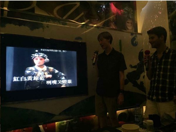 之后,我们也请他们欣赏了歌曲:“说唱脸谱”。其中带有京剧的唱腔引起两位同学极大的兴趣,我们也简单的为他们讲解了歌中唱到的“蓝脸的窦尔敦盗御马,红脸的关公战长沙”所包含的历史故事。理论结合与实践,为了能让外国留学生更好的感受中国音乐的特点,在介绍过相关的音乐内容后,同学们一起演唱了LINUS 同学特别喜欢也是风靡中国九十年代的歌曲“对面的女孩看过来”以及具有中国特色的京剧等曲目。