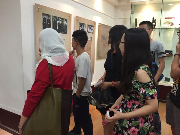参观结束后,学院交流营的所有学生和四名外国学生在校史展览馆前进行了合影留念。