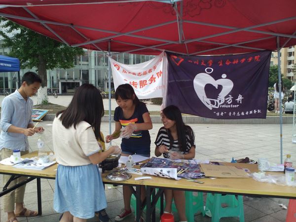 “腾飞”青年志愿者服务队和华西临床医学院“杏林风”青年志愿者服务队协办的血车进江安之一叶书签献真情活动圆满完成。
