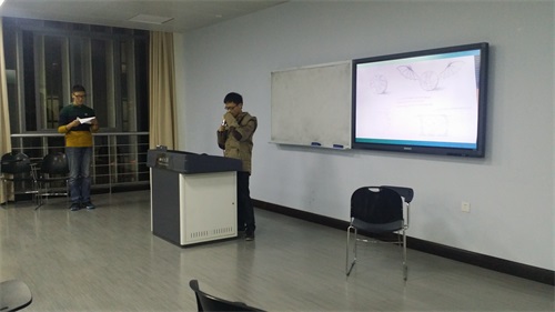 晚上7点30分,本次大赛的评委、所有参赛队伍及观众相继到场。颁奖仪式正式开始,主持人首先公布了获奖团队名单,包括一等奖两名、二等奖四名、三等奖五名及最佳创意奖一名。随后进入获奖产品展示环节,一等奖获得者张成、刘仁杰团队、二等奖获得者代表张雯轩团队及最佳创意奖获得者李泳科团队分别向大家介绍了他们的设计产品。其中,张成团队的高科技笔Pen pal设计中的无线数据的传输以及智能的凌空书写功能,以及张雯轩团队的智能衣柜根据天气状况及气温等因素通过计算机调节衣柜内温度的设计使人眼前一亮,而李泳科团队的准晶体窗更是结合了物理学与化学原理中的热缩冷胀原理、使室内气温可控且适宜。现场同学都被他们精彩的介绍和新颖的设计方案所吸引,并与获奖成员进行了热烈的现场问答互动。产品展示结束后,到场评委及主办方干部依次向获奖团队颁发了大赛荣誉证书,并合影留念。在同学们热烈的掌声和衷心的祝贺中,颁奖典礼顺利结束,本次概念产品设计大赛圆满落幕。