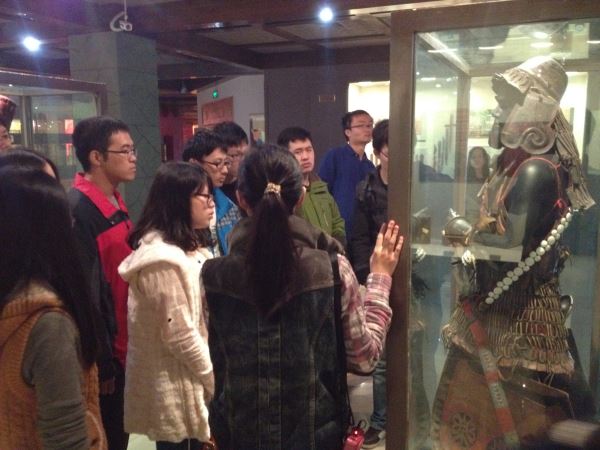 博物馆是中国高等学校中第一所综合性博物馆,于1919年正式成立,现藏文物4万余件,以西南少数民族文物、四川汉代画像石、四川陶瓷、明清书画及工艺美术文物最具特色,馆内珍藏的文物都极具历史价值。伴随着志愿者的讲解,我们先后参观了民俗学陈列馆、书画艺术厅、古代瓷器厅、石刻艺术陈列馆、考古学陈列馆等分展厅,领略了不同时期四川地区古文物的魅力,感受了巴蜀文化的精髓,同时也见识了川大考古学所取得的辉煌成就。参观过程中,同学们还积极的同解说员交流,了解了更多文物背后的历史故事,其中一幅在灯光照耀下才会显出龙纹图案的白色宣纸更是引得同学的赞叹。整个参观活动持续近1个小时,在最后的考古学馆驻足后,同学们从博物馆恋恋不舍地走出。