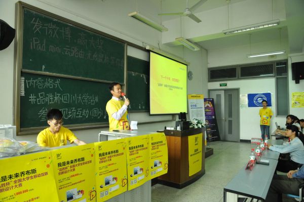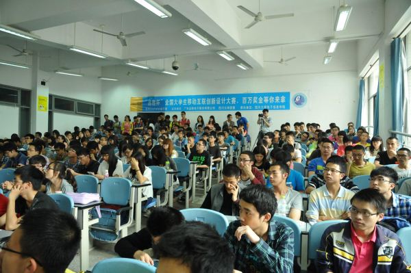 下午一点半左右,嘉宾和同学们陆陆续续进入会场,不到十分钟整个会场便热闹不已。两点整,主持人宣布第一届“品胜杯”全国大学生移动互联创新设计大赛暨MX动漫
