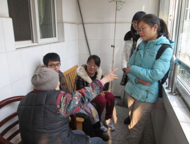 志愿者们以小组形式探望福利院疗养楼里的各位高龄。本院志愿者小组拜访了饱含故事的、无私的90岁高龄老人——刘志超,刘姥姥向我们讲述了她的人生经历,将她对生命的认识传授给志愿者们,并拿出照片和同学们分享美好的回忆,时间在欢声笑语中悄然流逝。分别时,刘姥姥再次感谢同学们的慰问,同时也对青年学生提出了殷切的期望。从她那里志愿者们收获最深的是四个字——无私、心宽。