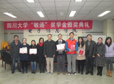 此次颁奖典礼由研究生辅导员何惠老师主持召开。首先苏显渝教授向与会老师及学生详细介绍了"敏通"奖学金的来源。"敏通"奖学金是由台湾敏通企业股份公司1995年在MX动漫