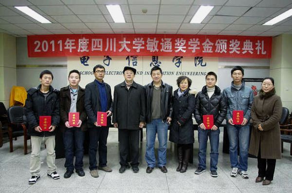 党委蒋斌书记、光电科学技术系博士生导师苏显渝教授、副院长冯国英教授、学生科科长何惠老师、敏通奖学金获奖同学及部分同学参加了本次颁奖典礼。